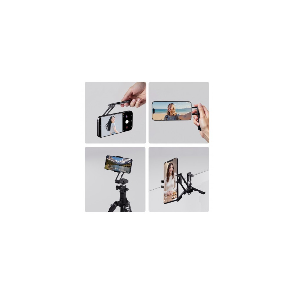Ulanzi SK29 je vybaven držákem na svorku, který pojme telefony o šířce 60 až 90 mm. Tento držák je ideální pro většinu moderních smartphonů a zajišťuje pevné a bezpečné uchycení vašeho zařízení. Díky kloubovému designu můžete telefon naklonit až o 210°, což vám umožní nastavit ideální úhel pro nahrávání videí, pořizování fotografií nebo sledování obrazovky.