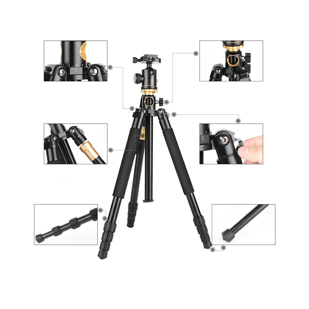 Všestranný fotostativ MTY999H s maximální výškou 156 cm s kulovou hlavou. Zlomený středový sloupek lze namontovat vodorovně nebo naopak, což vám umožní pořizovat ploché fotografie a záběry z velmi nízké perspektivy. Nohy stativu se skládají na druhou stranu, což usnadňuje přenášení. Jeden z nich lze odšroubovat a použít jako monopod. Nosnost do 8 kg.