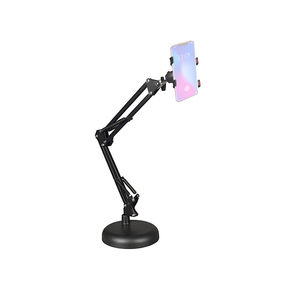 Stolní stativ v podobě nastavitelného ramene je praktickým řešením, perfektním pro téměř všechny online tvůrce, jejichž hlavním pracovním nástrojem je chytrý telefon. Díky široké rozteči montážní spony, jednoduchému ovládání a velkému rozsahu nastavení lze telefon namontovat téměř v jakémkoli úhlu a v jakékoli poloze. To usnadňuje uspořádání atraktivních rámečků a dělá tvorbu materiálů mnohem pohodlnější než při použití standardních stativů – stativů nebo selfie tyčí.