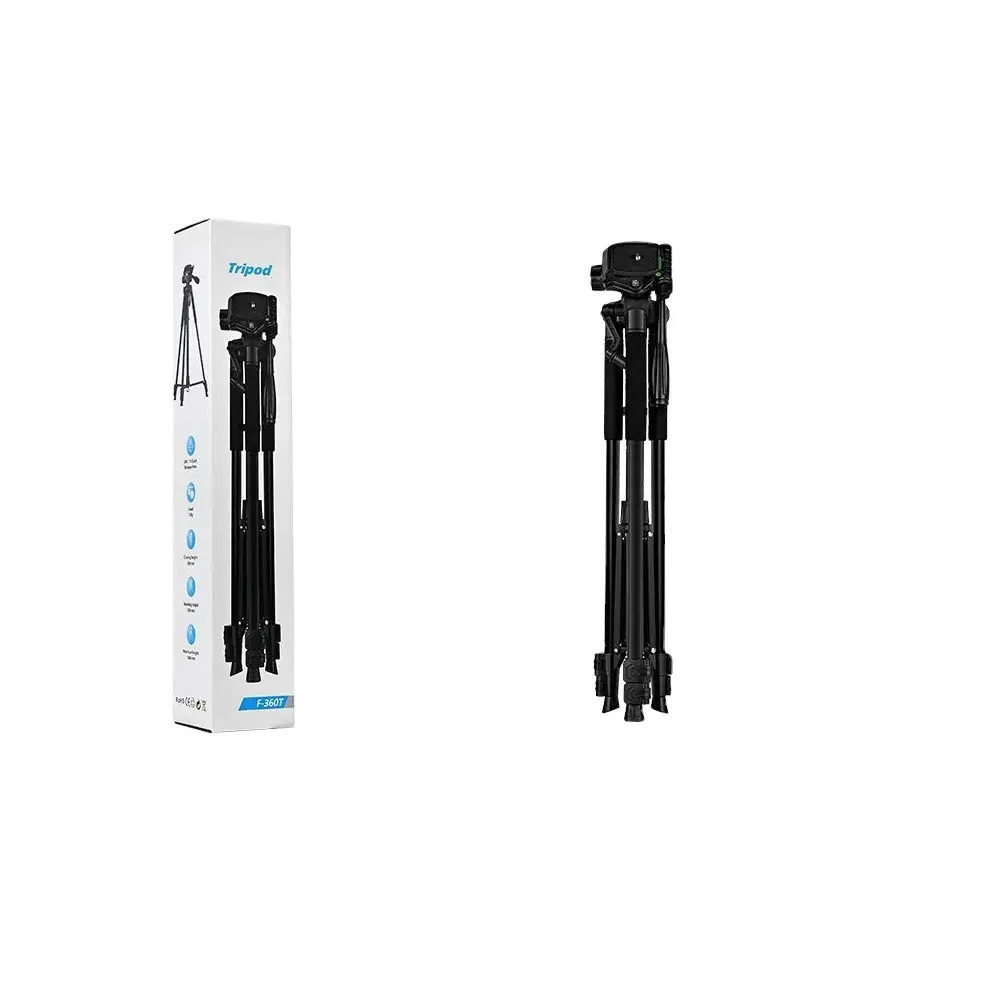 Stativ F-360T je všestranný a robustní stativ určený pro smartphony, fotoaparáty a další záznamová zařízení. Díky nastavitelné výšce a otáčení o 360° nabízí stabilní podporu pro fotografování, natáčení videa, živé vysílání a další. Je vyroben z lehkých, ale odolných materiálů, snadno se přenáší a má protiskluzové gumové nožičky pro větší stabilitu.