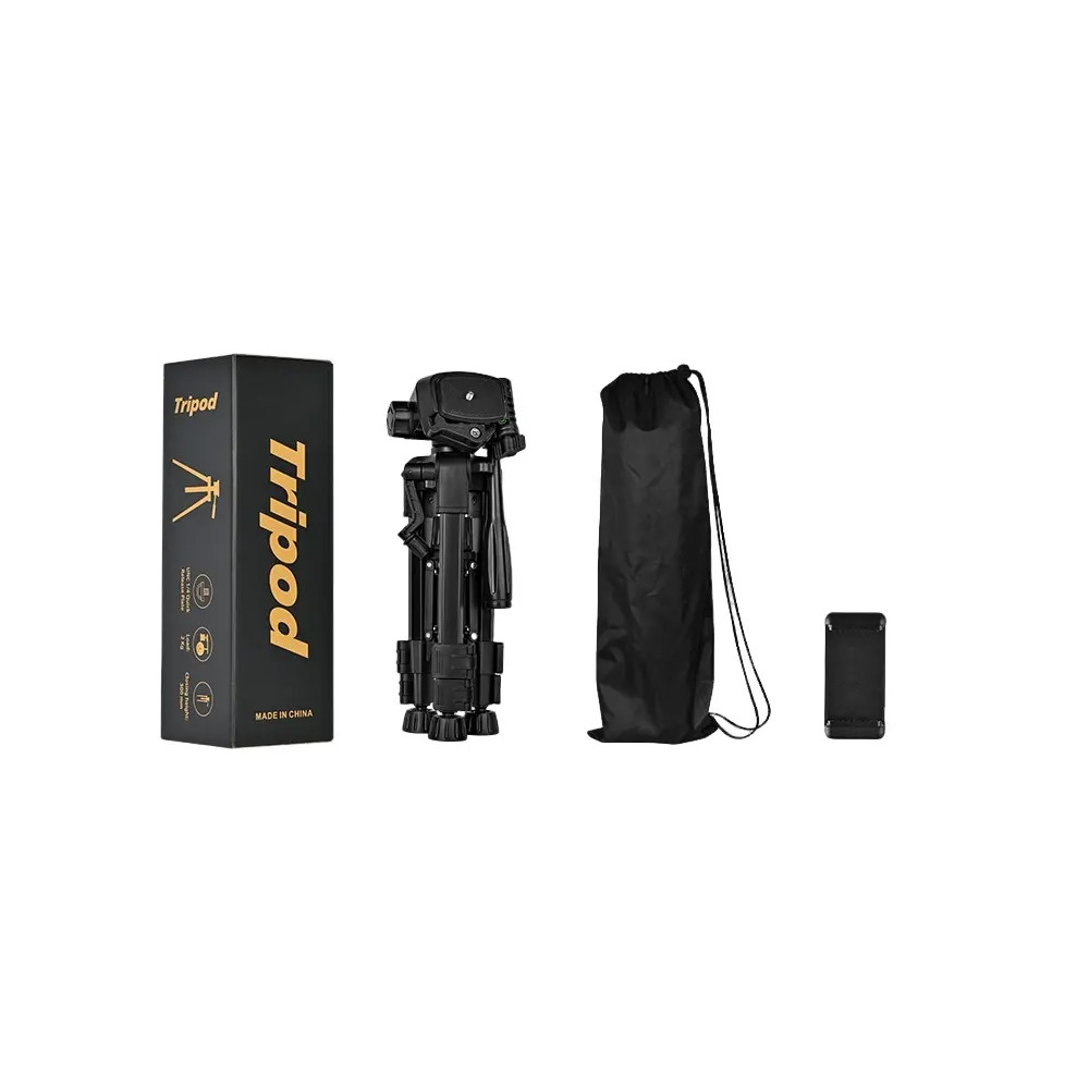 Stativ D-50 Black je všestranný a robustní stativ určený pro smartphony, fotoaparáty a další záznamová zařízení. Díky nastavitelné výšce a otáčení o 360° nabízí stabilní podporu pro fotografování, natáčení videa, živé vysílání a další. Je vyroben z lehkých, ale odolných materiálů, snadno se přenáší a má protiskluzové gumové nožičky pro větší stabilitu. Součástí je držák na telefon, pouzdro. Fotoaparát lze připevnit pomocí 1/4" závitu.