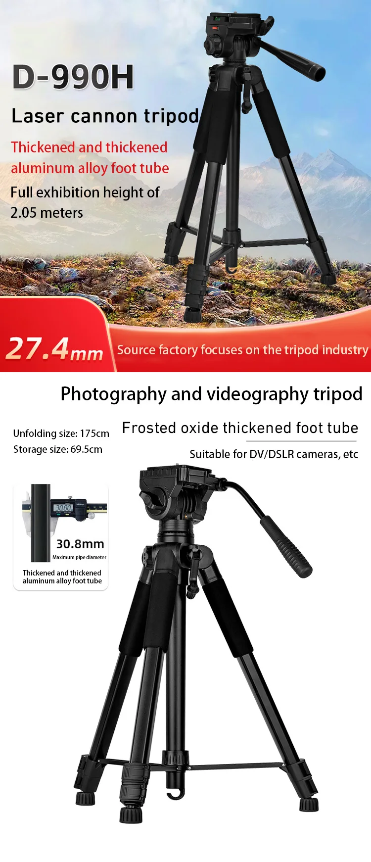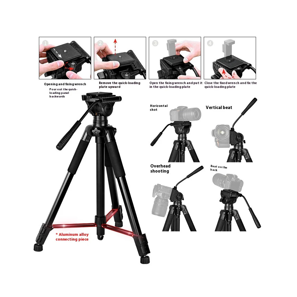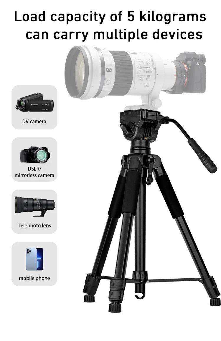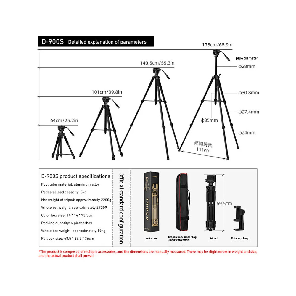 Stativ D-900S je všestranný, robustní stativ ( opravdu pevný a stabilní ) určený pro smartphony, fotoaparáty a další záznamová zařízení. Díky nastavitelné výšce a otáčení o 360° nabízí stabilní podporu pro fotografování, natáčení videa, živé vysílání a další. Je vyroben z lehkých, ale odolných materiálů, snadno se přenáší a má protiskluzové gumové nožičky pro větší stabilitu. Nosnost 5 kg.