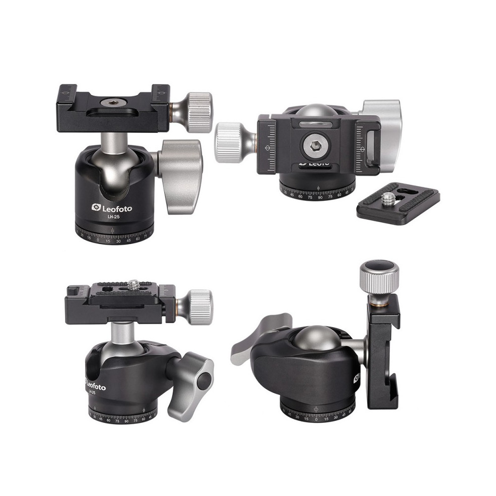 Sada obsahuje kulovou hlavu Leofoto LH-25, která váží pouhých 178 g, ale snadno unese zařízení o hmotnosti až 6 kg. Hlava nabízí plynulý pohyb ve všech směrech, což umožňuje přesné kompozici a s