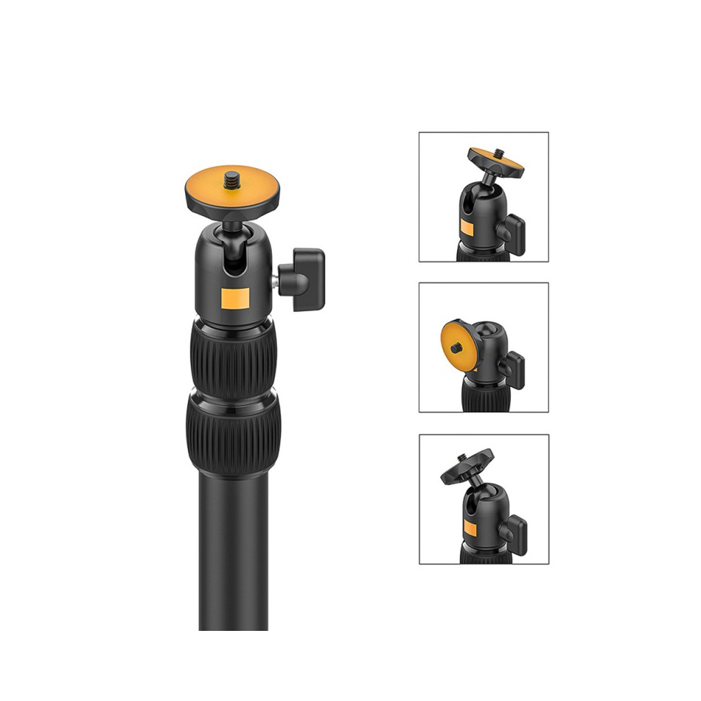Univerzální montáž: Stativ je vybaven kulovou hlavou s 1/4'' závitem, která umožňuje připojení široké škály příslušenství, jako jsou malé LED lampy, mikrofony, držáky na telefon nebo sportovní kamery. To zajišťuje, že LS01 je připraven na jakýkoliv úkol, ať už jde o natáčení videí, podcastů nebo živých přenosů.