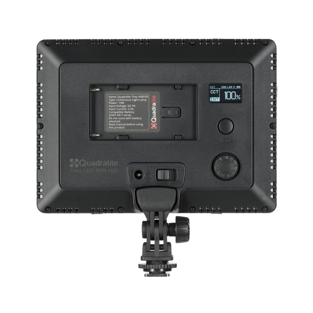 LED panel Quadralite Thea RGB 150 vyniká od ostatních produktů svou schopností reprodukovat téměř jakoukoli barvu RGB. Panel Thea RGB lze připojit přímo k vašemu smartphonu prostřednictvím speciální aplikace Quadralite, takže můžete ovládat všechna jeho nastavení pomocí smartphonu. Je to velmi užitečné, když během natáčení nastavíte systém lamp vysoko, takže je nebudete moci ovládat tradičně pomocí zadního ovládacího panelu.