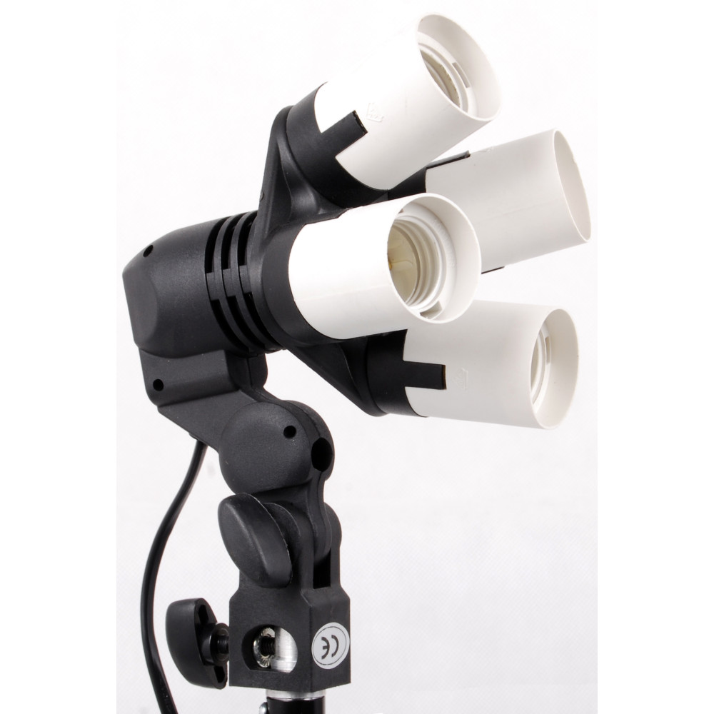 držák pro 4 žárovky standardní patice E27. Lze připojit i fotografický deštník. Sestava obsahuje držák pro 4ks žárovek + držák žárovky NK1D. Max. zatížení je 250W. Standardní závity E27.