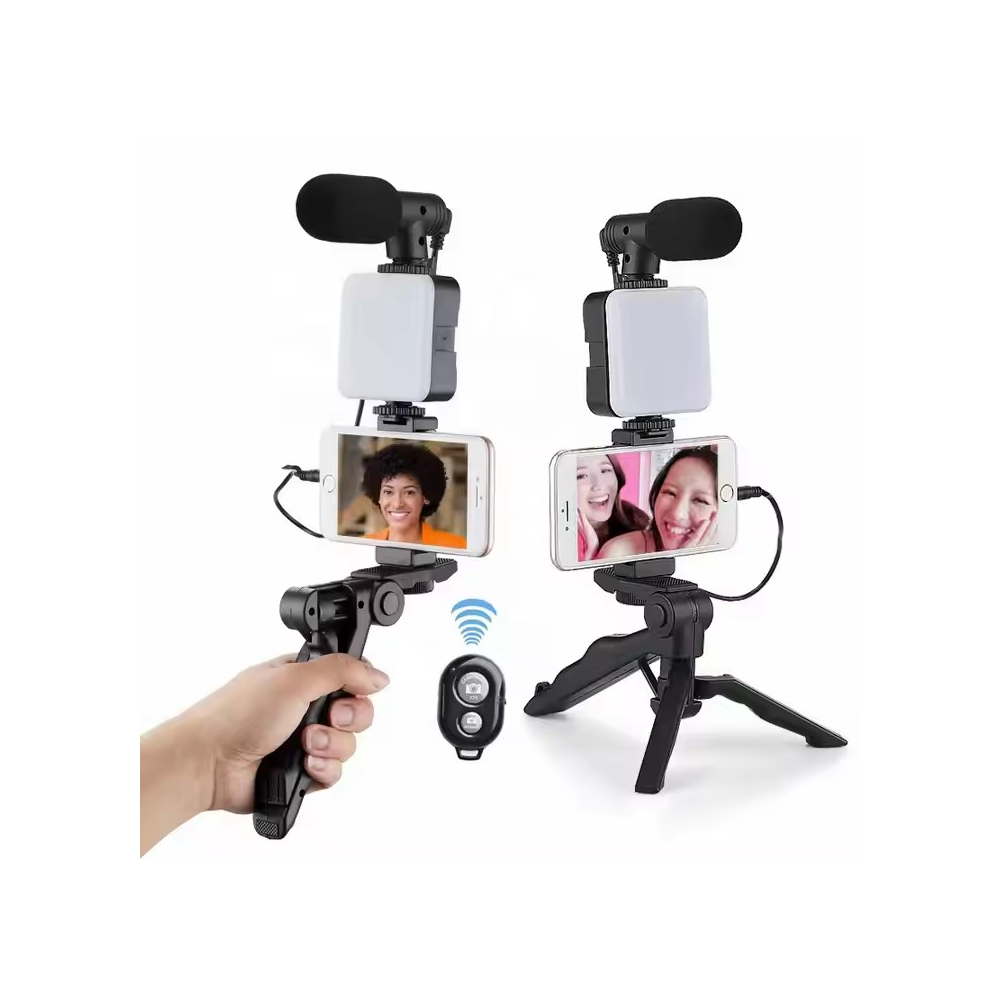 Sada pro natáčení videí z chytrého telefonu s mikrofonem, led světlem a stativem z dálkovým ovládáním. Vstupte do světa profesionálního natáčení.