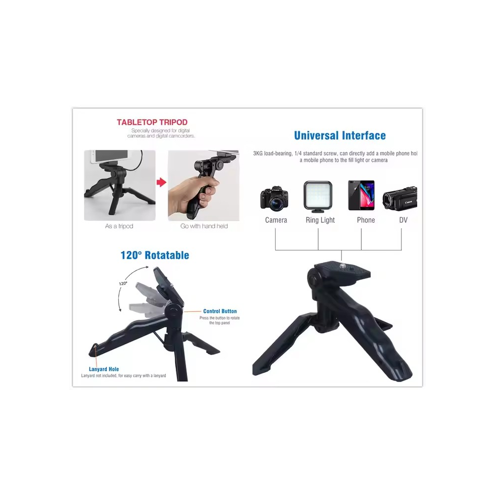 - 6500K LED světlo: 49 korálků lampy poskytuje světlo s barevnou teplotou 6500k a výstupním výkonem 5W, napájení je 3 x AAA baterií (nejsou součásti balení), dostatečně jasné světlo pro natáčení.