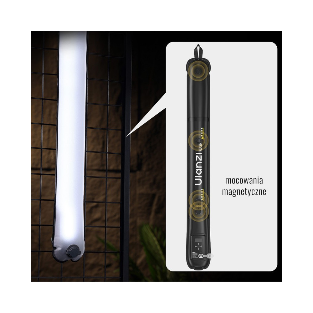 ULANZI UA20 Air Tube je revoluční 20W dvoubarevná nafukovací LED lampa, navržená pro ty, kteří hledají kombinaci mobility a vysoké funkčnosti. Tato lampa je vybavena teplými a studenými LED diodami, které umožňují nastavit barevnou teplotu v rozsahu CCT 2700-6500K, což zajišťuje maximální flexibilitu při tvorbě světelných scén. S dvanácti tematickými režimy a vysokým indexem barevného podání (CRI 95+) přináší UA20 věrné a přirozené barvy, což je ideální pro filmové a fotografické projekty.