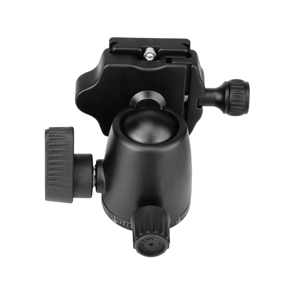 Kulová hlava, která vám umožňuje umístit připojené příslušenství správným směrem. Spodní držák má standardní závit pro stativ. Lze upevnit na stativ pomocí 1/4" šroubu. Nastavení polohy kuličky umožňuje její naklápění v libovolném směru. Je také možné naklonit hlavu až o 90°.