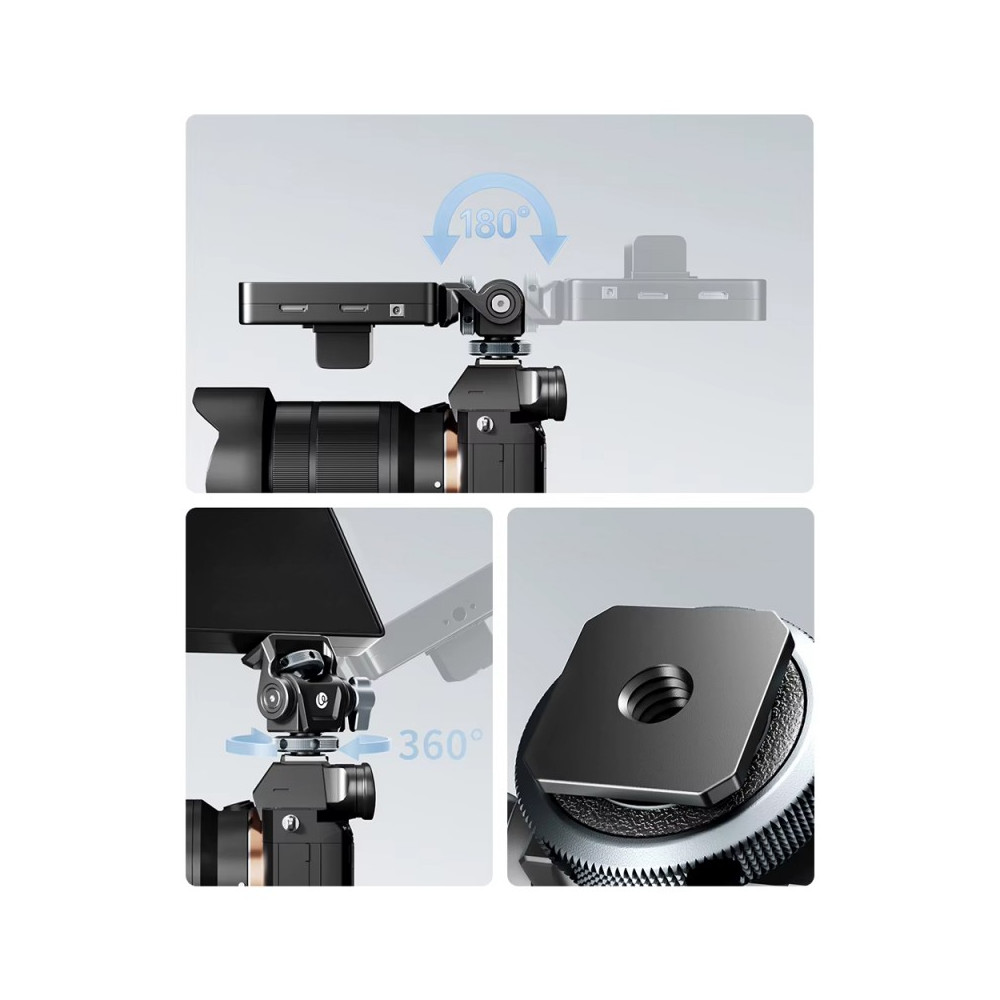 The Ulanzi CO82 makes it easy to quickly and accurately adjust other accessories without having to expand the entire rig with larger mounting elements. The adjustable resistance allows you to better tailor the head control to specific equipment, while its compact shape ensures lightness and comfort in everyday use. This is a practical solution for those who want to keep their kit organized and have more control over the position of their monitor, lamp or other accessories.