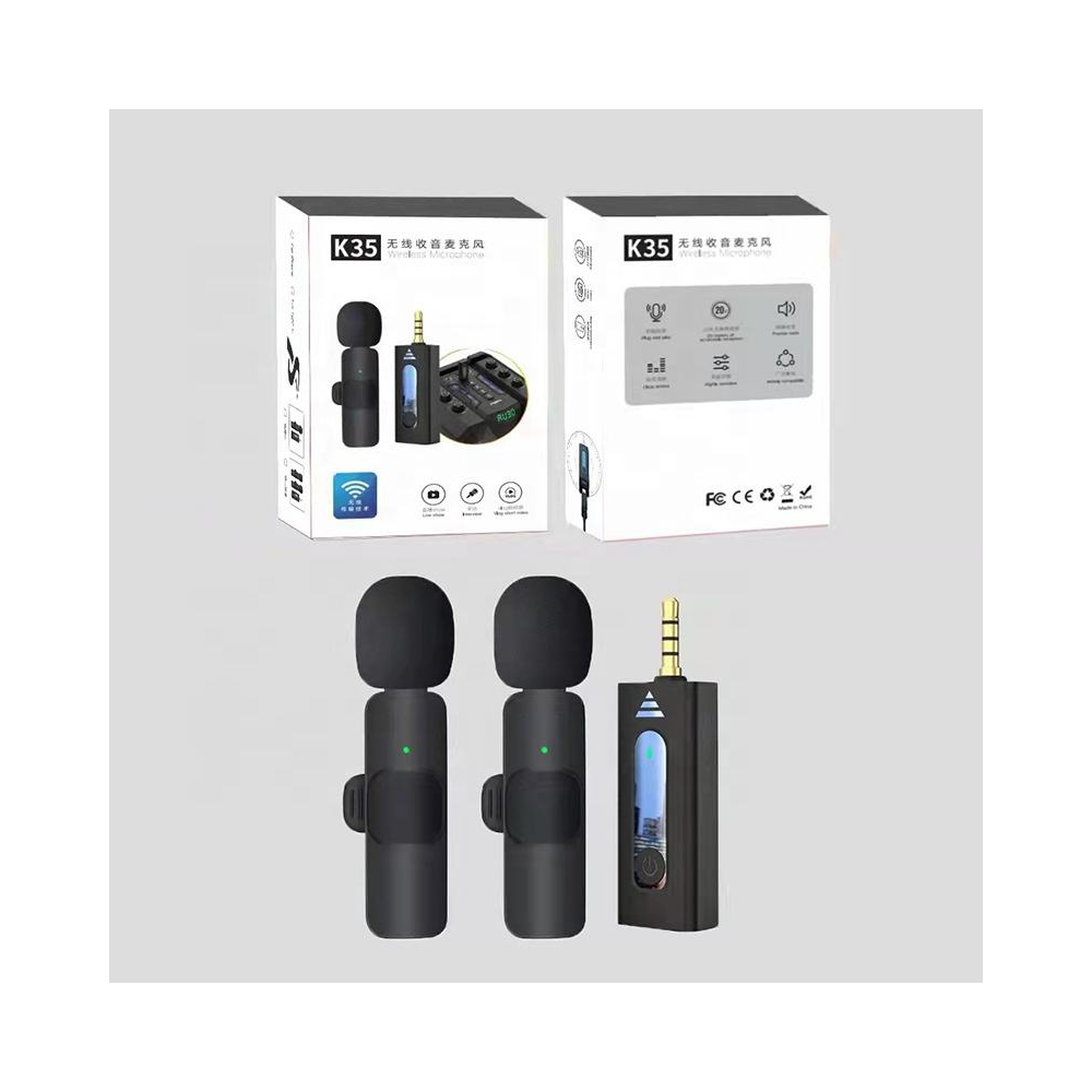 K35 Bezdrátový klopový mikrofon 2 x + příjímač s jackem 3,5mm