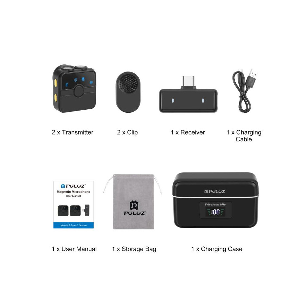 PULUZ SmartLink WS300 Magnetic lavalier wireless microphone with charging case, Type-C RX receiver and 2 microphones