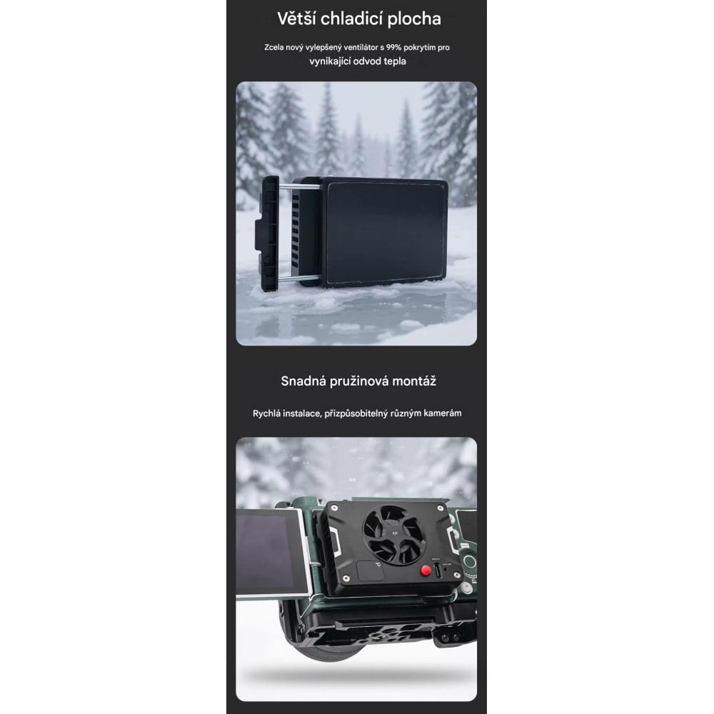 With the JN-108 external cooling fan, you'll be assuredu that your mirrorless camera stays in optimal condition even in challenging shooting conditions. This product is the ideal accessory for anyone who wants to maximize their camera's performance and ensure smooth, uninterrupted recording. Order your JN-108 today and take your shooting to the next level!