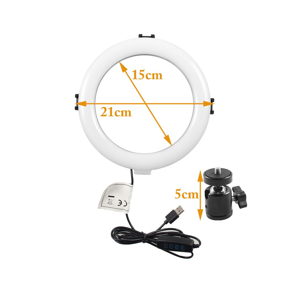 30W USB LED circular lamp with dimmer and colour temperature adjustment for smartphone.