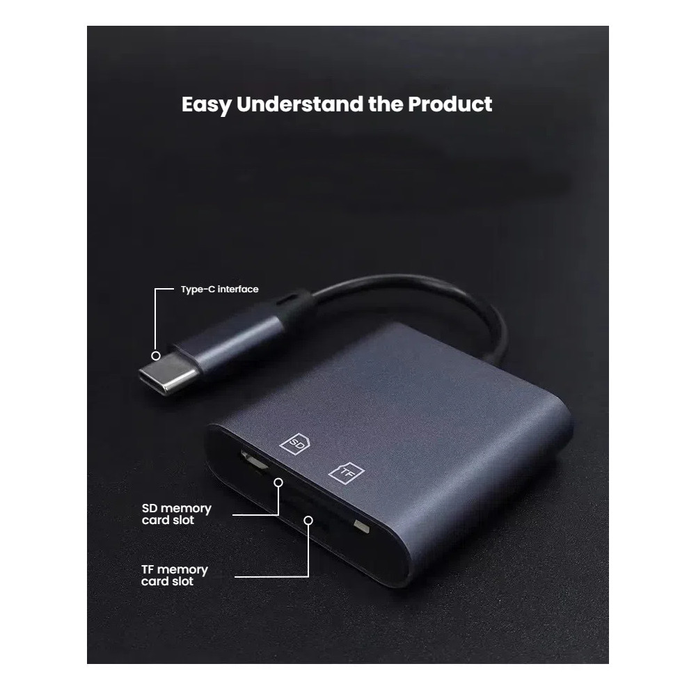 Multifunctional adapter/reader SD, TF card + USB + USB-C...