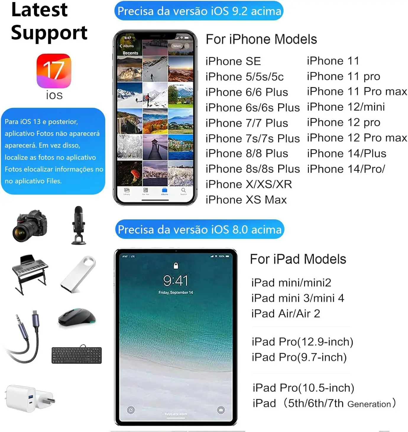This adapter is compatible with a wide range of devices, including iOS and Android phones. Whether you're using an iPhone or Android, the adapter allows you to easily connect external devices such as headphones, memory cards or USB drives.