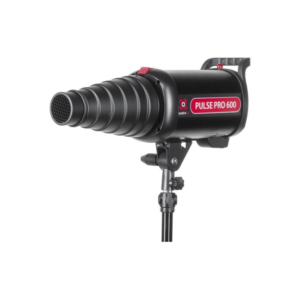 The conical tube, or snoot, gives a narrow, pinpoint beam of light, the edges of the shadow are very sharp. The kit also includes a honeycomb attachment for even more contrasting lighting and colour filters. The Snoot has a Bowens-type mount, so it fits a wide range of accessories from Quadralite, Bowens or other alternative manufacturers.