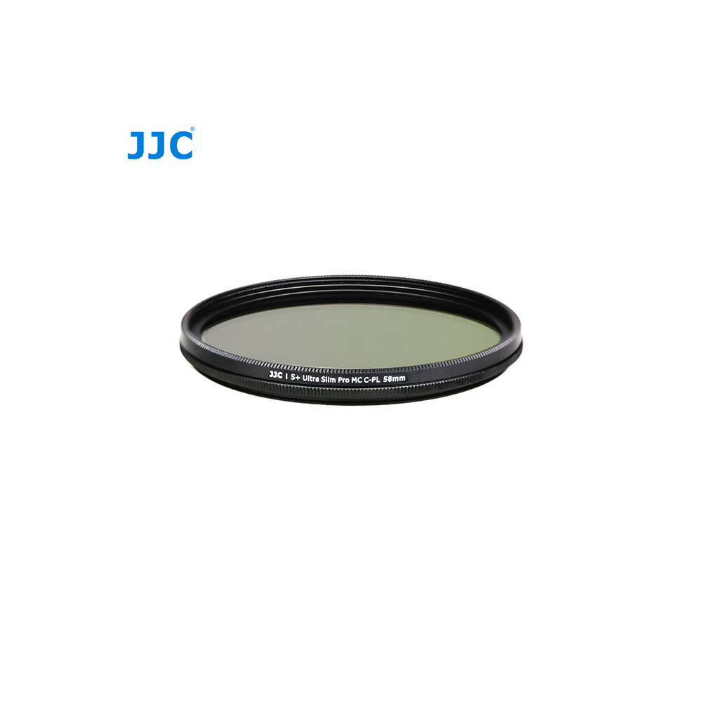 JJC S+ Series Ultra Slim Multi-Coated Circular Polarizing Filters are designed to reduce reflections and glare by filtering out light that becomes polarized due to reflection from non-metallic surfaces such as water and glass. The result is a noticeable increase in saturation of the sky and foliage, as well as clearer images when shooting in foggy conditions. The effect can be seen in the viewfinder and changed by rotating the filter. These series filters are made of German optical glass to maintain image quality and are housed in a precision milled aluminum flange.