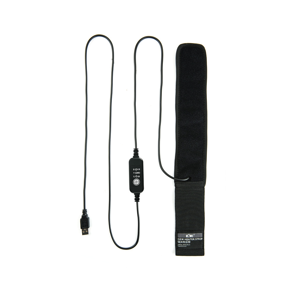 JJC DHS-1 vyhřívací elektrický pásek. Zabraňuje kondenzaci zahříváním čočky na fotoaparátu nebo dalekohledu. S režimem nízkého, středního a vysokého ohřevu. Běží na externí USB napájení, které není součástí balení.
