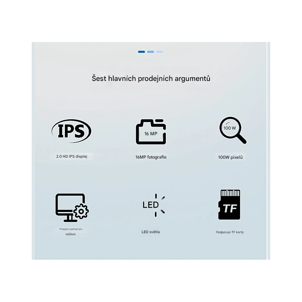 The handheld digital magnifier (microscope) with a 2" screen is the ideal tool for those who need a detailed view of small objects. With dimensions of 16.7x9.0x2.5 cm and a practical design, it is easily portable and fits comfortably in the hand. Thanks to the LED backlight, a clear and sharp image is ensured even in low light conditions, which is crucial for accurate observation.