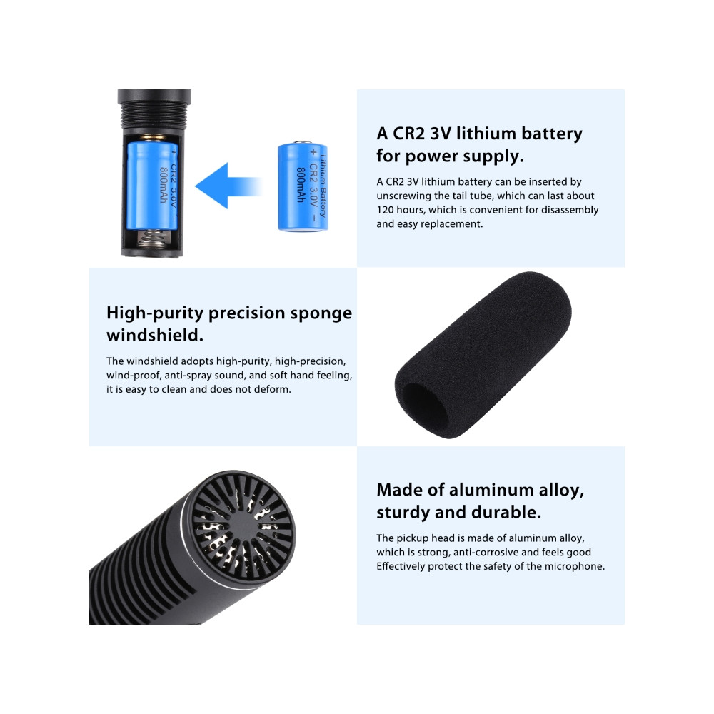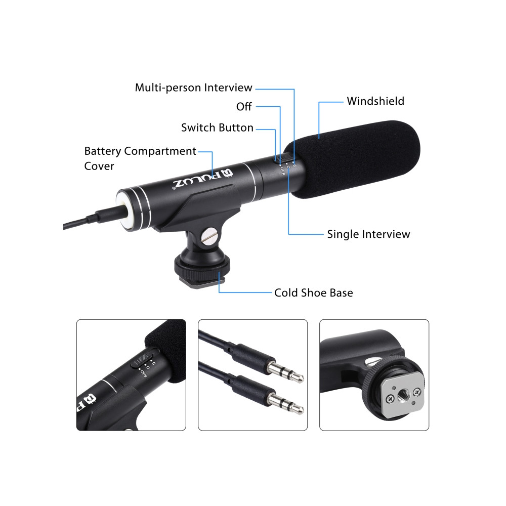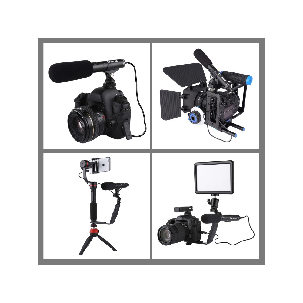 PULUZ Profesionální rozhovorový kondenzátorový video shotgun mikrofon s 3,5mm audio kabelem pro DSLR & DV kameru