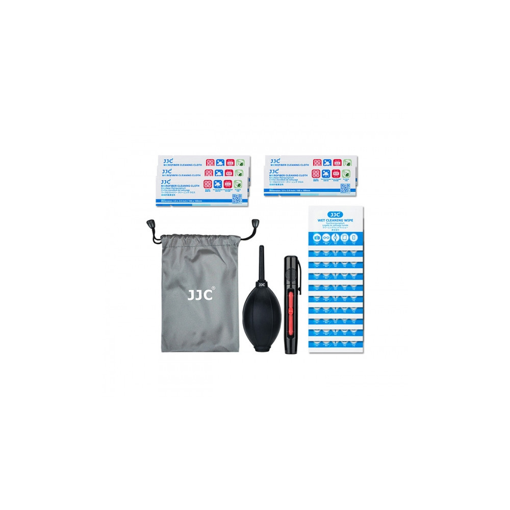 Novinka od firmy JJC. Čistící sada na optiku, čistící sada pro fotoaparáty. Obsahuje ofukovací balónek, čistící pero, 5x utěrku z mikrovlákna a 10x vlhčený čistící ubrousek.