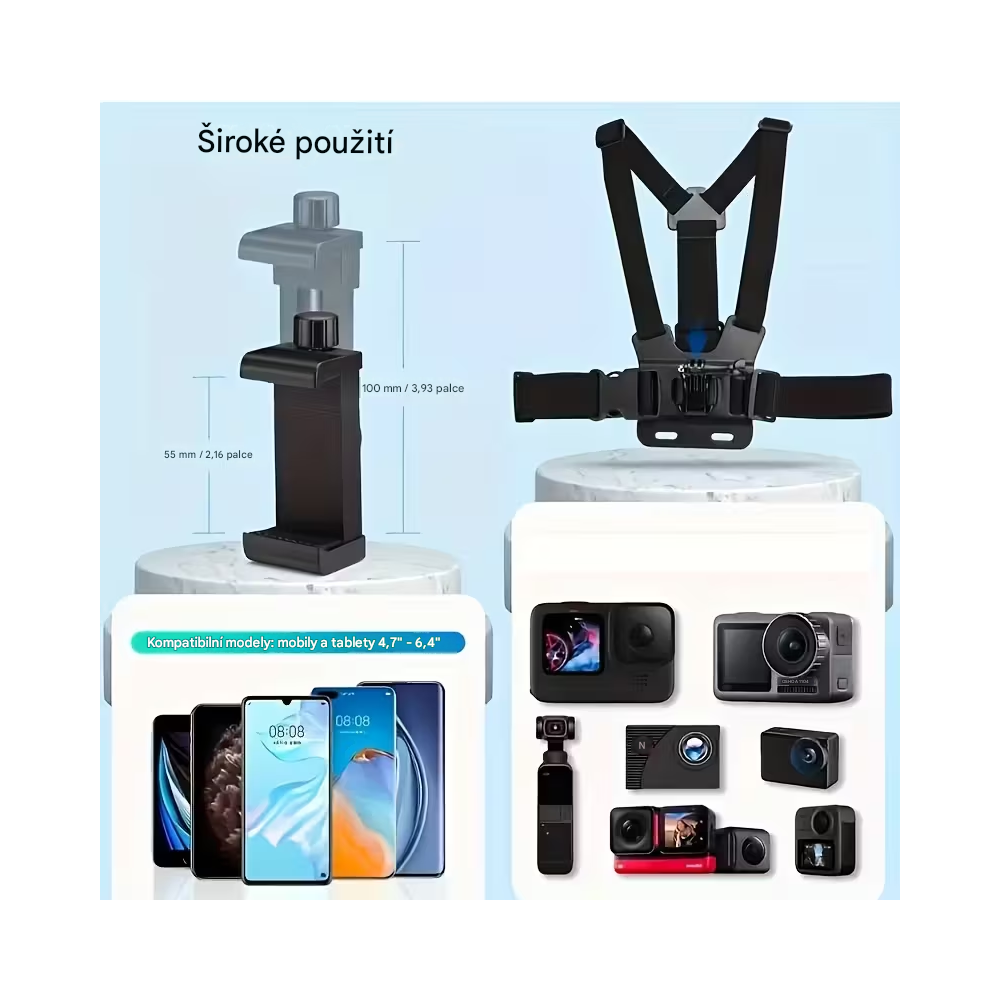 This harness is perfect for a wide range of sports and outdoor activities. Whether it's skiing, mountain biking or motocross, it will always give you a stable and smooth ride that captures the adrenaline-filled moments of your adventures. It's an indispensable accessory for anyone who wants to share their experiences from a first-person perspective.