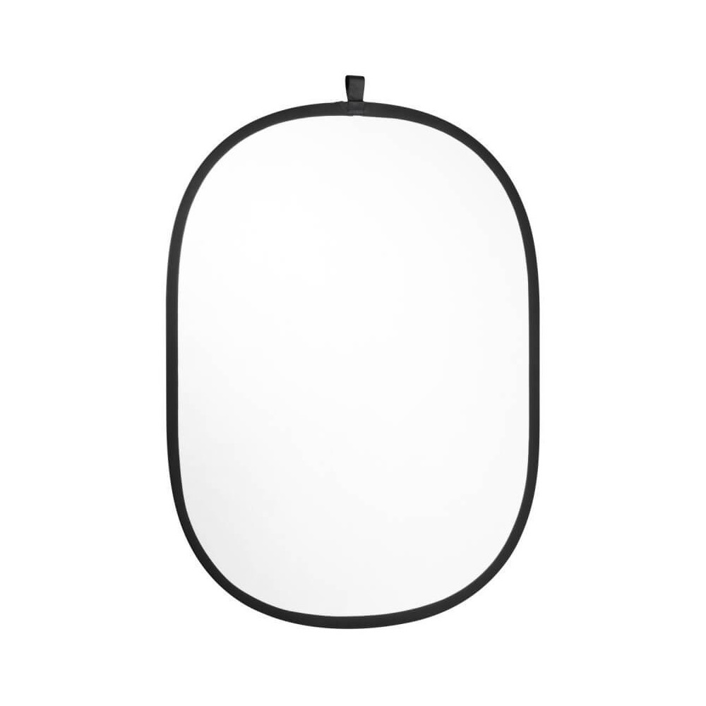 Thanks to its oval shape, the plate is easy to lean against various objects such as studio tripods, trees or fences. Its flexible frame makes it easy to fold and unfold, making it easy to carry and store. The folding figure-of-eight mechanism ensures that the board takes up a minimum of space, and thanks to the handy handle-pendant, you can easily fix or hang it.