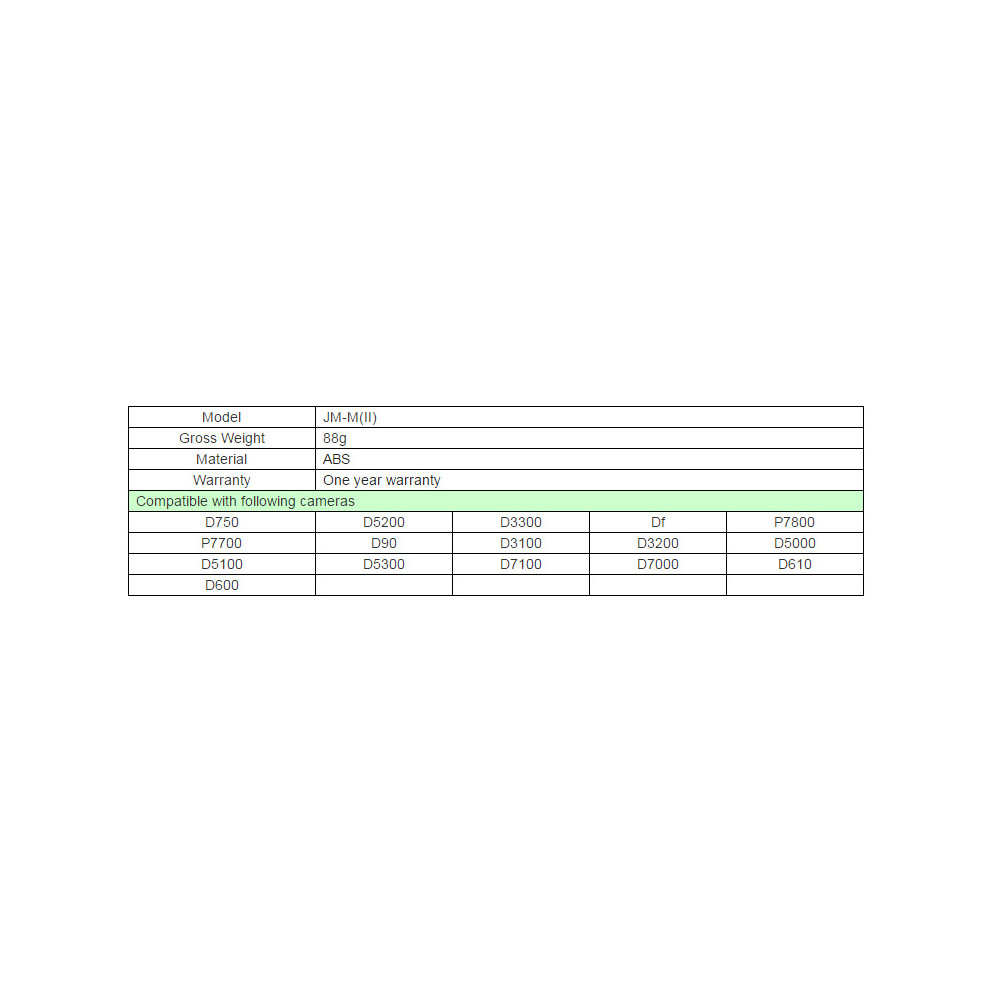 The JM series radio controller is compatible with most DSLR and SLR cameras equipped with a remote control port. This makes it ideal for a wide range of models and brands, ensuring its versatility. Whether you're a professional photographer or an enthusiastic amateur, this remote gives you the freedom and flexibility to capture your images.