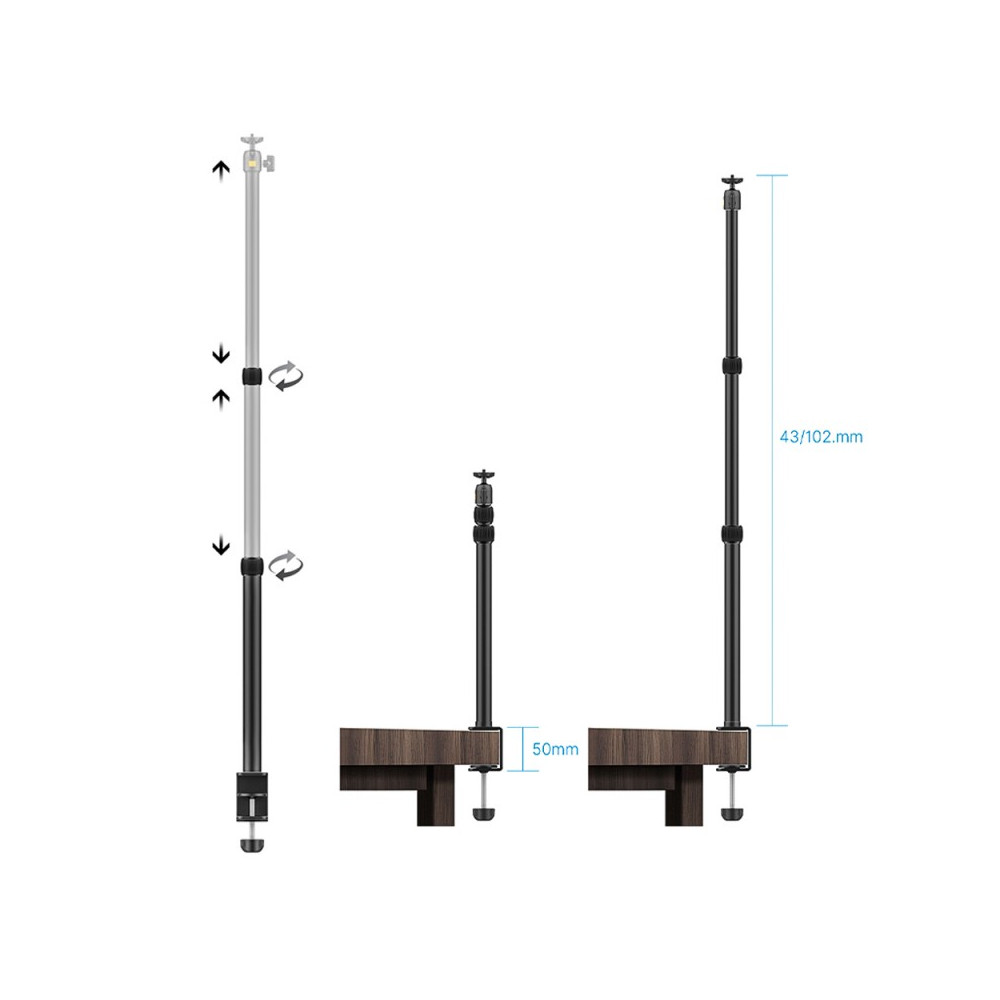 Adjustable telescopic design: the ULANZI VIJIM LS01 offers infinite height adjustment from 43 to 102 cm, allowing flexible use in a variety of scenarios. Three sections locked by knobs ensure stability and easy height adjustment to suit your needs.