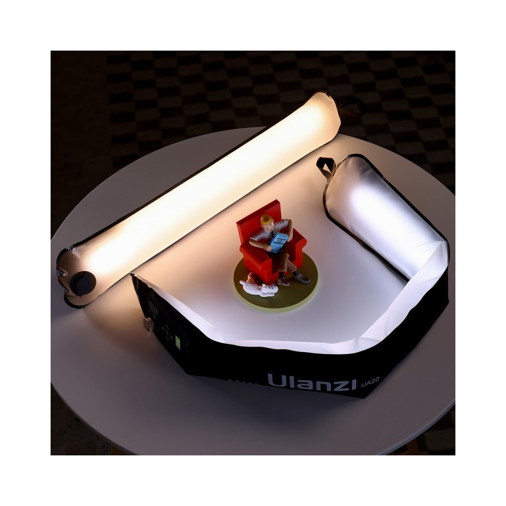 The ULANZI UA20 Air Tube is a revolutionary 20W dual-color inflatable LED lamp designed for those looking for a combination of mobility and high functionality. This lamp features warm and cool LEDs that allow you to adjust the color temperature in the CCT range of 2700-6500K, providing maximum flexibility in creating lighting scenes. With twelve themed modes and a high color rendering index (CRI 95+), the UA20 delivers true and natural colors, making it ideal for film and photography projects.