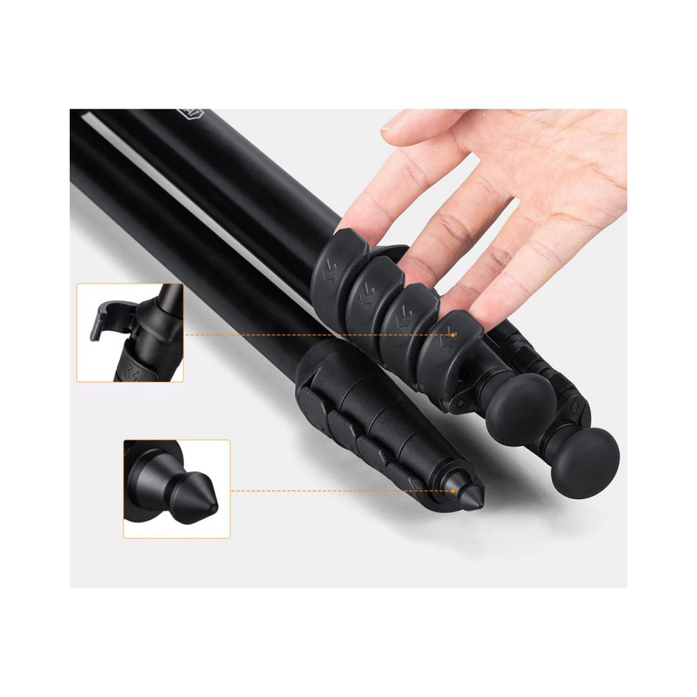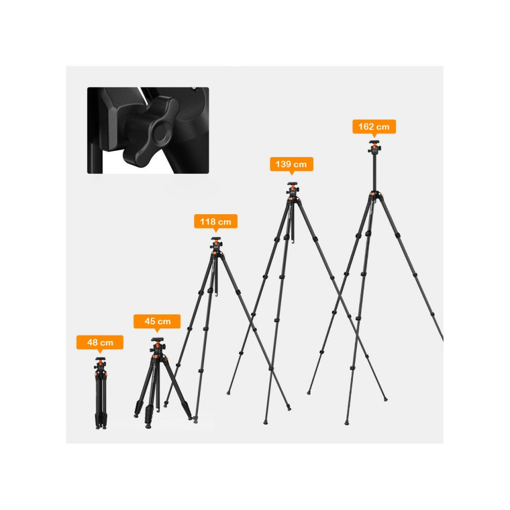 The K&F Concept KF09.161 is the ideal tool for any photographer looking for a lightweight and versatile tripod with a ball head. This photo tripod combines durability and flexibility, making it the perfect choice for a variety of photographic situations. Made from high quality ABS plastic and aluminium, it weighs just 1.2kg, ensuring easy portability without unnecessary weight.