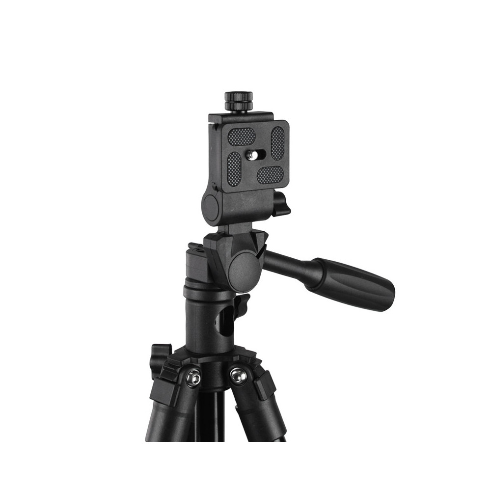 The integrated 3D head allows you to adjust the position of the camera in three planes : the head can be rotated around its axis, tilted forwards and backwards and tilted to the left in a range of 90°. Each position is independently locked. The removable quick release plate meets the arca swiss standard, so that other photographic accessories such as a phone holder can be mounted directly on the tripod Ulanzi ST-03 or Ulanzi ST-14 The quick release plate itself has a screw with a standard 1/4'' The rubber overlays on its surface stabilize the camera and protect its housing from scratches.