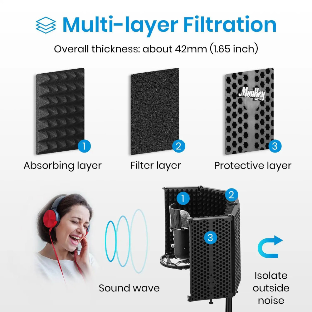 Akustická izolácia pre mikrofóny: AI-4 je kompaktné a skladné riešenie, ktoré poskytuje výnimočnú akustickú izoláciu. Je ideálny na štúdiové nahrávanie, podcasty, vokály a vysielanie.