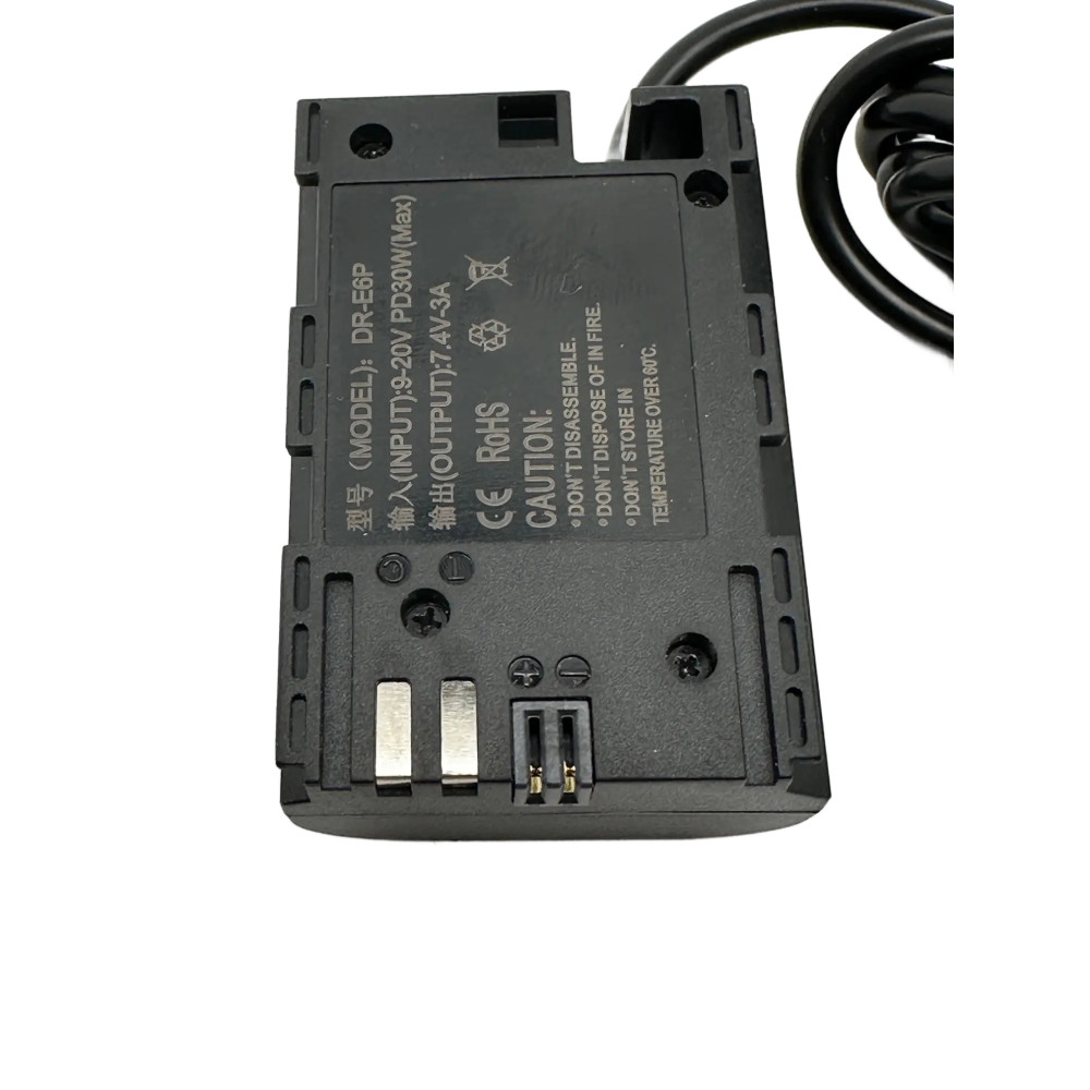 Atrapa batérie ( nahrádza batériu ) pre fotoaparáty Canon, slúži na dlhodobé napájanie fotoaparátu alebo kamery z batérie ( akumulátora ) alebo sieťového adaptéra s výstupom USB-C 9-12 V, ktorý nie je súčasťou dodávky. Tento adaptér sa vkladá do fotoaparátu alebo videokamery namiesto batérie ( akumulátora ).