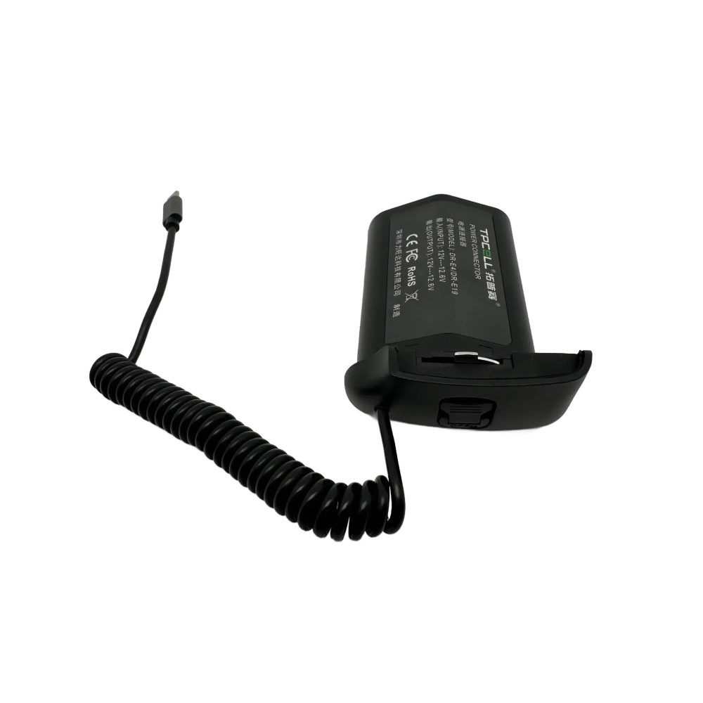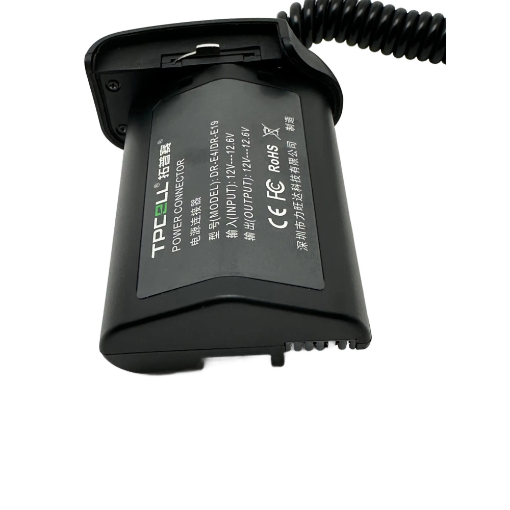 Atrapa batérie ( nahrádza batériu ) náhrada za LP-E4/E19 pre fotoaparáty Canon, slúži na dlhodobé napájanie fotoaparátu alebo kamery z batérie ( akumulátora ) alebo sieťového adaptéra s výstupom USB-C 9-12 V, ktorý nie je súčasťou dodávky. Tento adaptér sa vkladá do fotoaparátu alebo videokamery namiesto batérie ( akumulátora ).