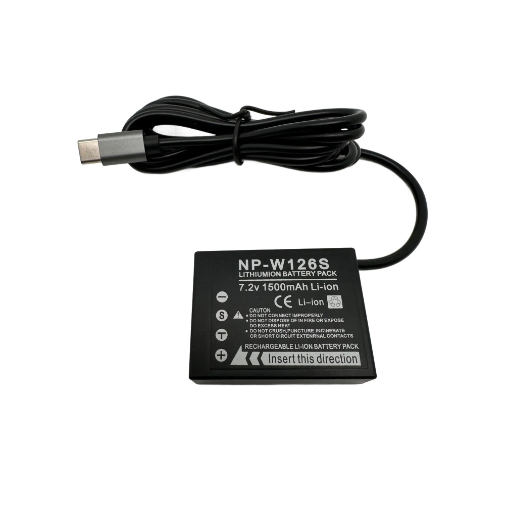 Atrapa batérie ( nahrádza batériu ) náhrada za NP-W126 pre fotoaparáty Fuji, slúži na dlhodobé napájanie fotoaparátu alebo kamery z batérie ( akumulátora ) alebo sieťového adaptéra s výstupom USB-C 9-12 V, ktorý nie je súčasťou dodávky. Tento adaptér sa vkladá do fotoaparátu alebo videokamery namiesto batérie ( akumulátora ).