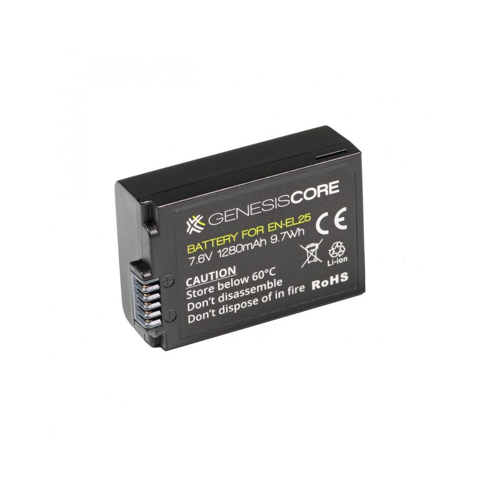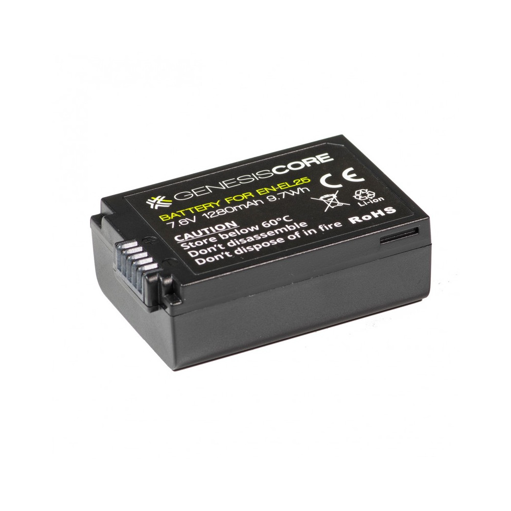 Kompaktná batéria Genesis Core EN-EL25 s napätím 7,6 V a kapacitou 1280 mAh, určená pre kompaktné fotoaparáty Nikon série Z.