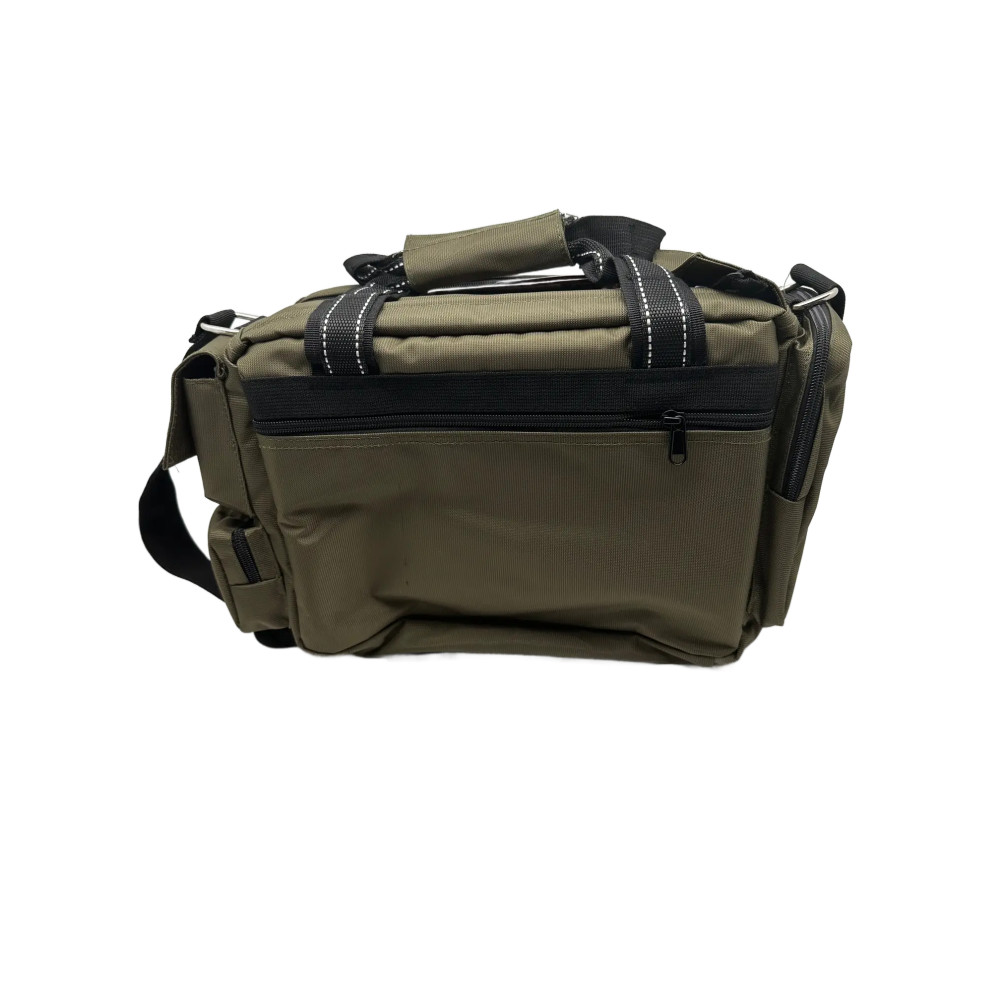 Univerzálna praktická taška s popruhom, na chrbte, vpredu a na bokoch , vrecko na zips alebo suchý zips. Vnútri voliteľné priehradky. Zosilnené dno. Farba khaki.