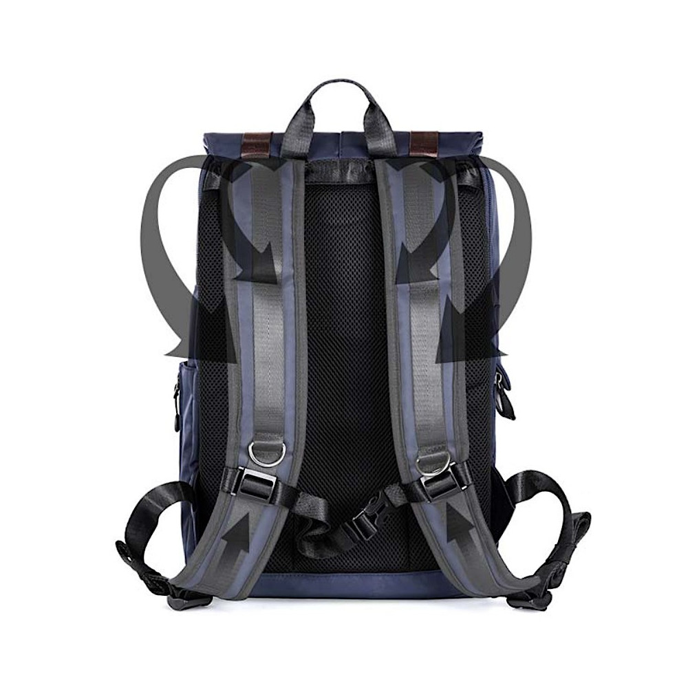 Batoh je vyrobený z odolného, vodeodolného nylonu 840D a na spodnej časti má dodatočnú výstuž z ekokože, ktorá ho chráni pred vlhkosťou alebo nečistotami. Prístup do horného oddelenia na zips je zabezpečený širokou klopou s dvoma popruhmi, ktorá nielen chráni pred krádežou, ale zároveň dodáva batohu módny, ležérny vzhľad. Jeho chrbát a nastaviteľné ramená sú navyše polstrované mäkkým, priedušným materiálom, takže ani dlhšie cesty s ťažším nákladom nie sú zaťažujúce. Používateľ má k dispozícii aj pomocný popruh s prackou, vedený na úrovni hrudníka, a rukoväť. Batoh sa dodáva s krytom proti dažďu, ktorý ho účinne chráni pred nepriaznivým počasím.