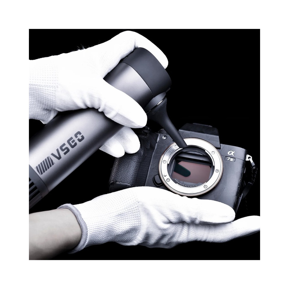 VSGO V-EB02-S3E je elektrický ventilátor určený na profesionálnu starostlivosť o fotoaparáty, ich snímače, objektívy a iné optické a elektronické zariadenia. Vďaka výkonnému motoru umožňuje efektívne odstraňovať prach, nečistoty a iné častice bez rizika poškodenia citlivých komponentov. Vytvára maximálny tlak 17,2 kPa a ponúka tri úrovne nastavenia sily fúkania: