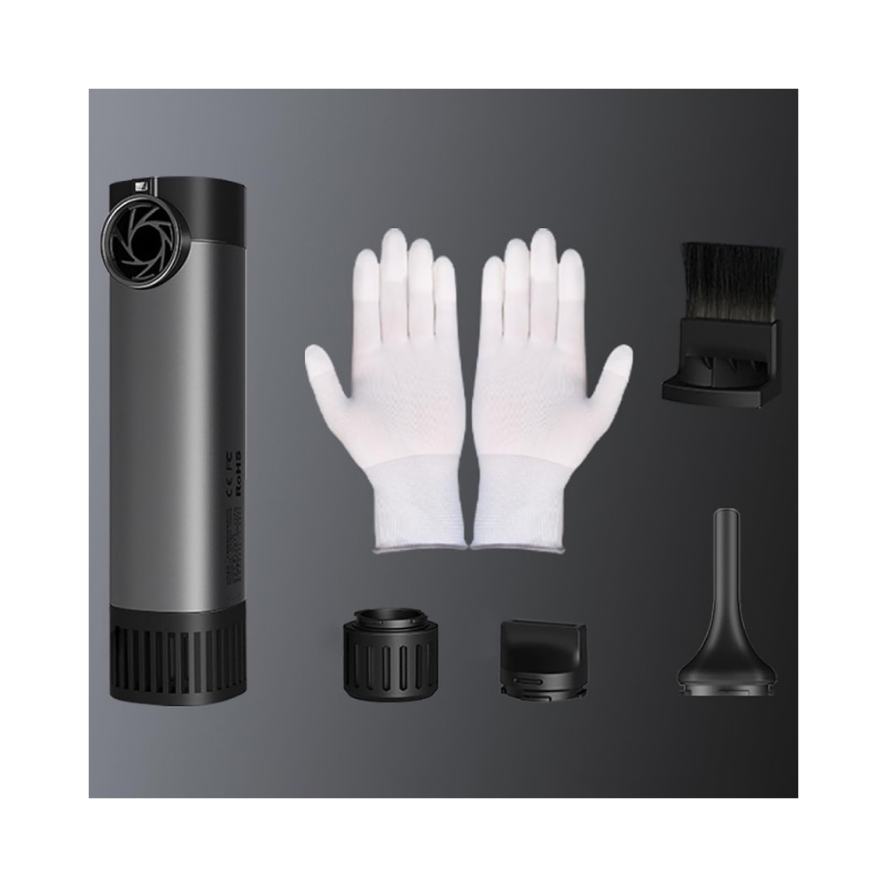 Ventilátor VSGO V-EB02-S3E je pripravený na použitie hneď po vybalení - súprava obsahuje prídavný HEPA filter, dve vymeniteľné trysky (plochú a štandardnú), kefový nadstavec a rukavice. Prídavný LED dióda umiestnená na nad ventilátorom umožňuje osvetliť práve čistené prvky.