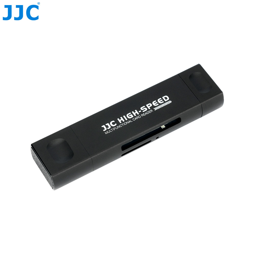 Multifunkčná čítačka kariet série JJC CR-UCL1 je špeciálne navrhnutá pre telefóny iPhone so systémom iOS 13 a novším. Je vybavená tromi portmi: portom USB 2.0 typu A, portom Lightning a portom USB 3.0 typu C a rozširuje 2 sloty na karty (SD/ microSD) pre vaše počítače, smartfóny alebo tablety s podporou Lightning OTG/ USB-C OTG. Pripojte čítačku kariet k počítaču, tabletu alebo smartfónu pomocou konektorov USB Type-A, Lightning alebo Type-C. Produkt uľahčuje prenos súborov/fotografií/videí medzi všetkými vašimi zariadeniami alebo medzi dvoma pamäťovými kartami doma alebo na cestách.