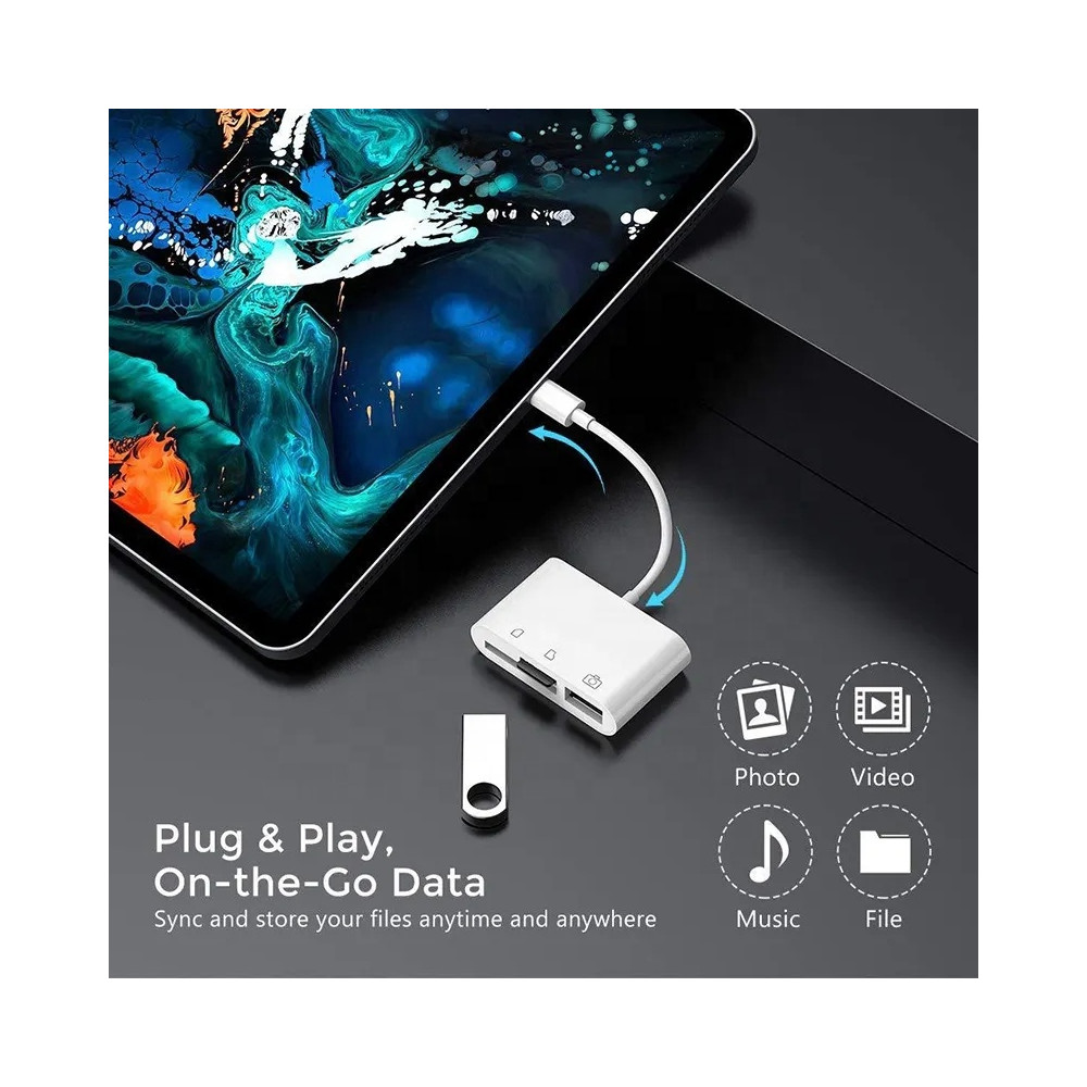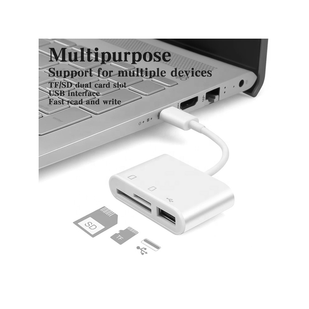 Multifunkčná čítačka pamäťových kariet Pre iPhone s iOS 13 a novším; Obsahuje 3 porty: USB 2.0...