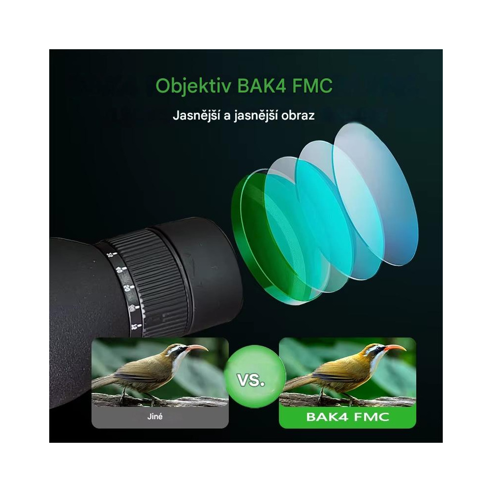 Vďaka kvalitným hranolom BaK-4 a viacerým antireflexným vrstvám (FMC) získate obraz, ktorý je nielen jasný, ale aj ostrý a verný realite. Táto technológia zabezpečuje vysokú priepustnosť svetla, čo znamená, že aj pri slabom osvetlení budú vaše pozorovania detailné a bez stresu.