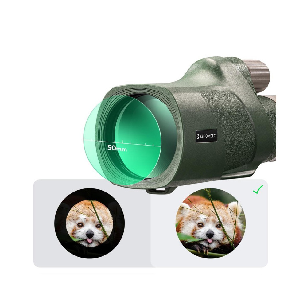 Monokulár K&F Concept 12x50 BaK4 IP68 KF33.076 je kombináciou pokročilej optickej technológie, odolnosti a praktickosti. Jeho všestrannosť a kvalita z neho robia dokonalý nástroj pre každý, kto si chce vychutnať krásu prírody alebo zachytiť úžasné okamihy vo vysokej kvalite. Či už ste amatérsky pozorovateľ alebo profesionálny fotograf, tento ďalekohľad vás nesklame. Pripravte sa na nezabudnuteľné zážitky s ďalekohľadom K&F Concept KF33.076!