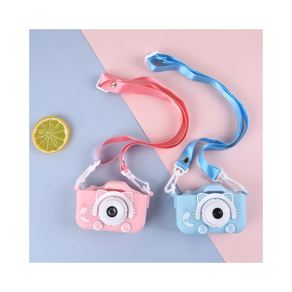 Mini detský digitálny fotoaparát s veľkosťou obrazovky 2,0 palca. Motívom je roztomilá mačka, okrem fotoaparátu je silikónové puzdro , 32 GB slot na TF kartu. Tento model je v ružovej farbe.