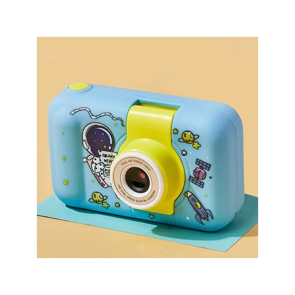 Mini detský digitálny fotoaparát s veľkosťou obrazovky 2,0 palca. Motívom je astronaut, okrem fotoaparátu je silikónové puzdro , 32 GB slot na TF kartu. Tento model je v modrej farbe. Vhodný pre deti od 6 rokov. Objektív otočný o 180 stupňov.