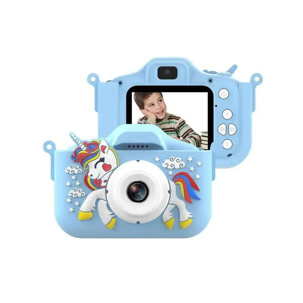Mini detský digitálny fotoaparát s veľkosťou obrazovky 2,0 palca. Motív je roztomilá mačka, okrem fotoaparátu je silikónové puzdro , 32 GB slot na TF kartu. Tento model je v MODREJ farbe.